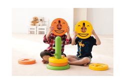 2.兩種顏色的圓盤,各有三種表情,可進行顏色或表情配對遊戲