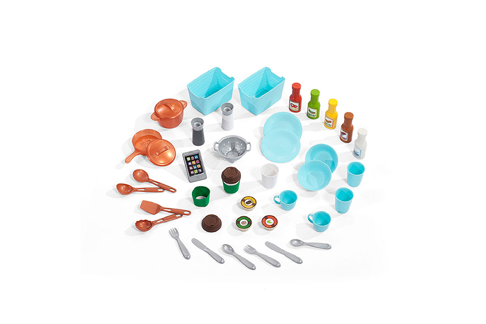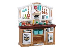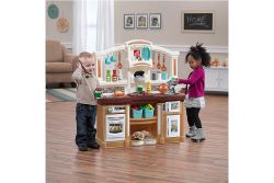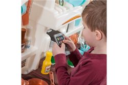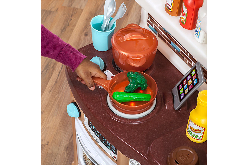 這間超大的兒童遊戲廚房可容納多個幼兒遊戲,逼真的電子爐灶燃燒器具,有燈光和聲音,可以用來沖咖啡、
