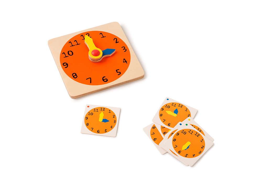 可實際操作的木製時鐘,引導孩子練習「看時間」與「調時間」,強化手眼協調與生活常識的連結性。