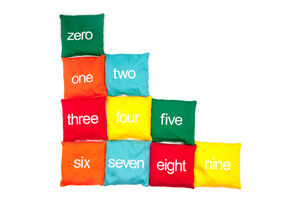 沙包顏色豐富明亮,且對應的數字0-9,讓幼兒邊運動,邊認識數字與顏色。