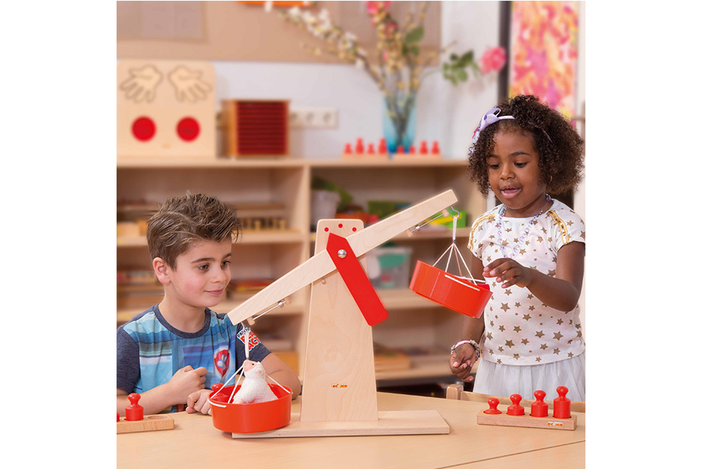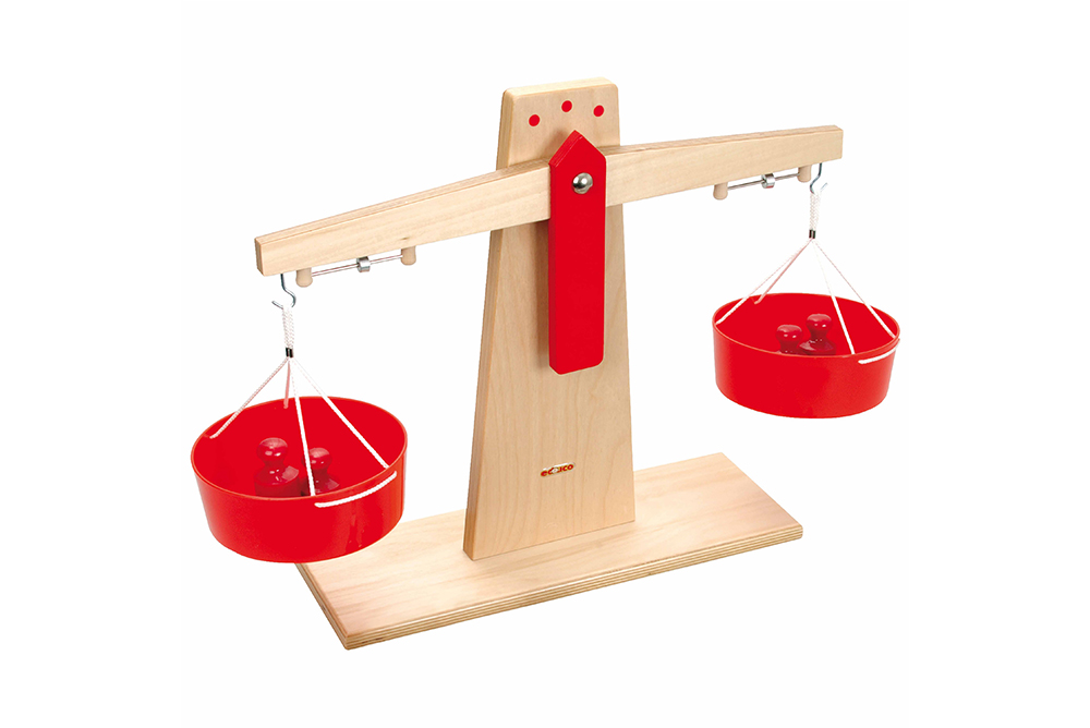 可在天秤的兩端分別放進不同的物體,進行重量比較。