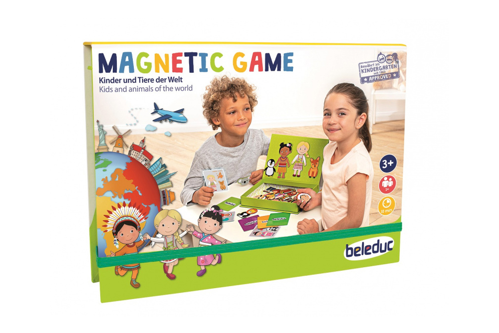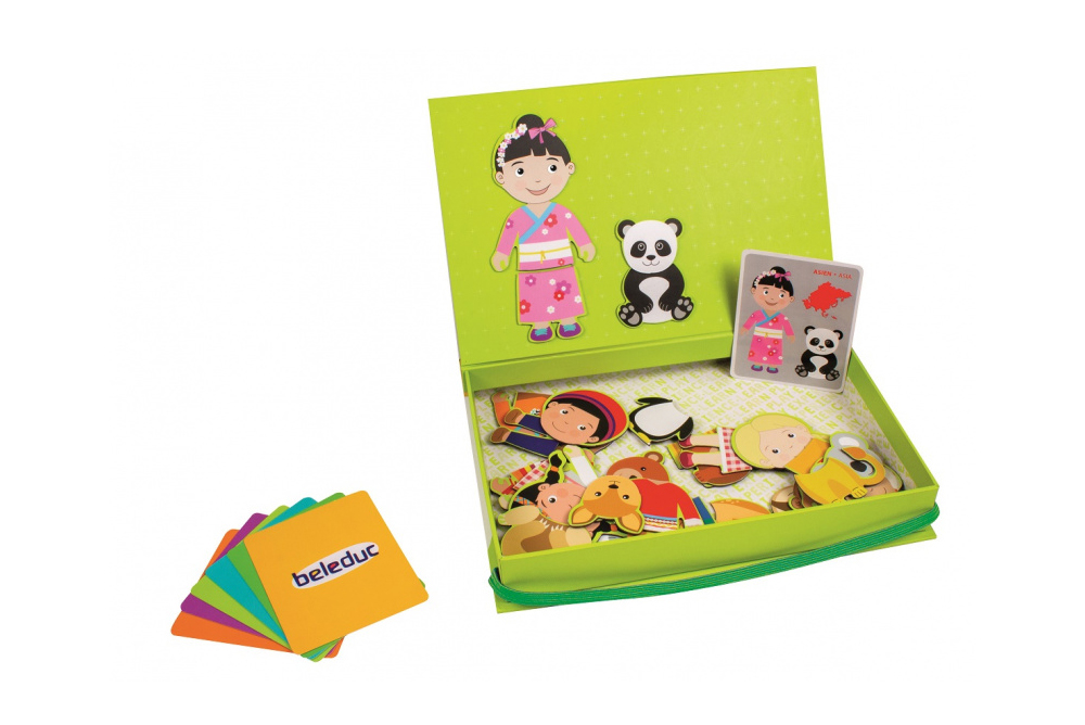 這款磁力拼圖介紹了來自不同大陸的動物和兒童的形象。