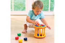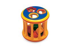 在滾筒的兩側分別有3個形狀,孩子們可以通過形狀和顏色配對將塑膠塊放入,每個塑膠塊都會發出不同的聲音。