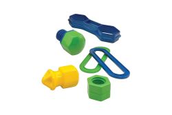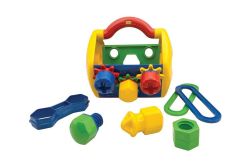這個工具箱包含了一些基本的工具組件,如螺母、螺栓、螺絲、連接器和齒輪,以及像螺絲刀和板手之類的工具,