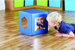 變形軟竟被牢牢鑲嵌在立方體中,不同的軟鏡圖形便於讓孩子早期探索幾何形狀。