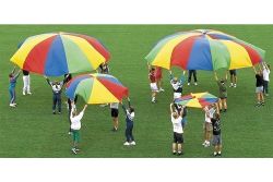 彩虹傘可以帶給孩子或成人許多類型活動,他由多彩、輕質、耐火的聚酯纖維製成,擁有8個強大抓力的手抓環,