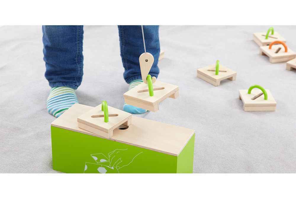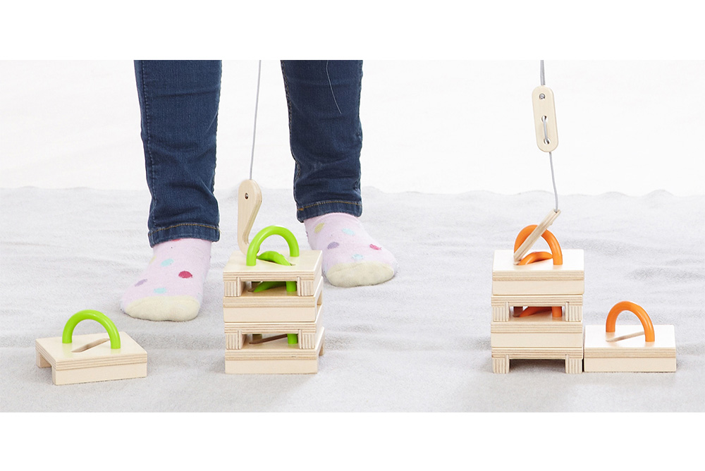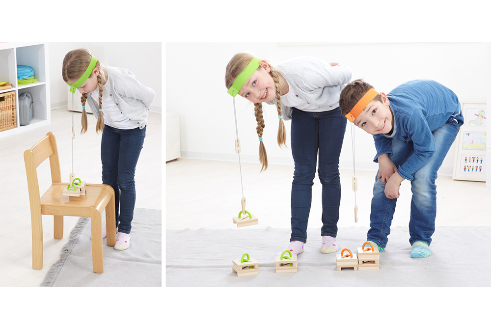 用頭部吊繩將吊環底部進行運輸的過程可以訓練幼兒肢體的協調,並獲得精確的空間感知能力。