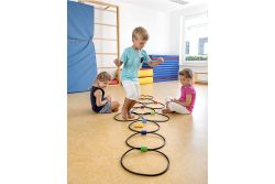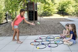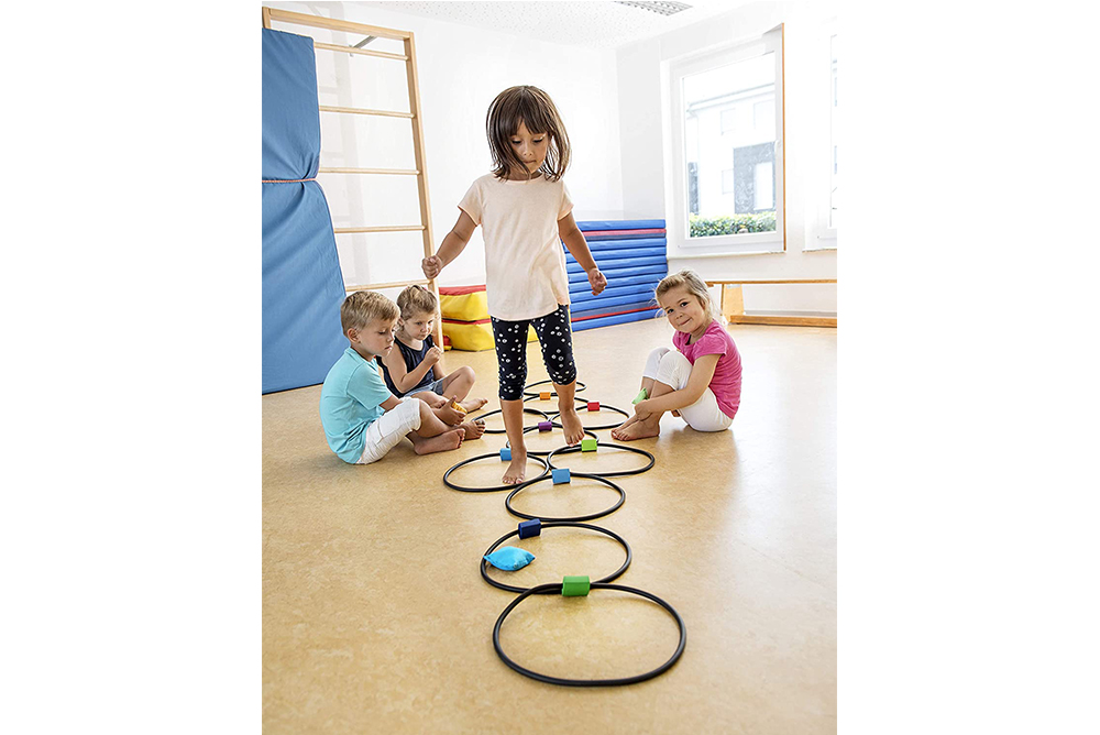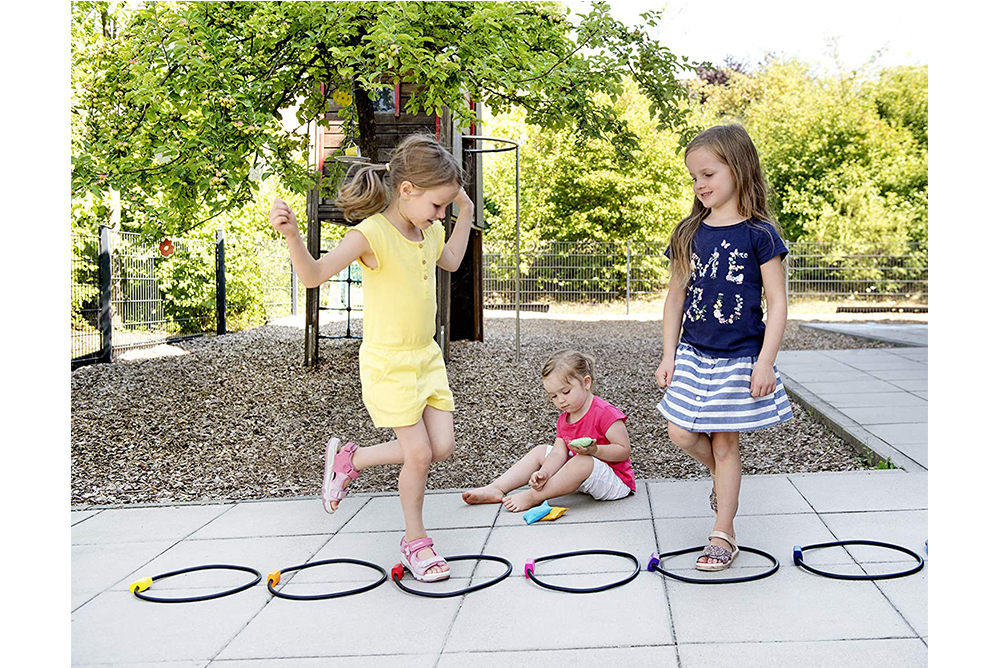 圈上的圓環可以分開一定距離也可以挨著排列,再加上3個豆袋,遊戲的趣味性和多樣性界變得豐富起來。