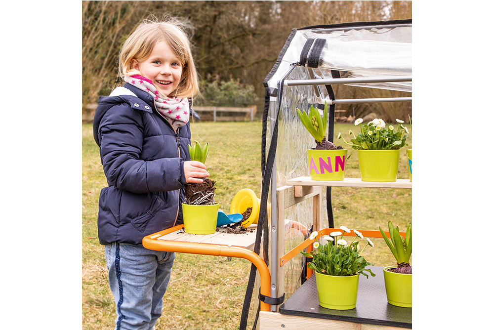 溫室讓孩子自己成為園丁,探索植物世界可以種植花卉、香料、蔬菜和其他植物。