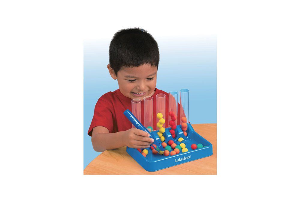 孩子們只需像握筆般地拿著鑷子,就可以開始分類遊戲,訓練他們寫作需要的肌肉控制和協調。