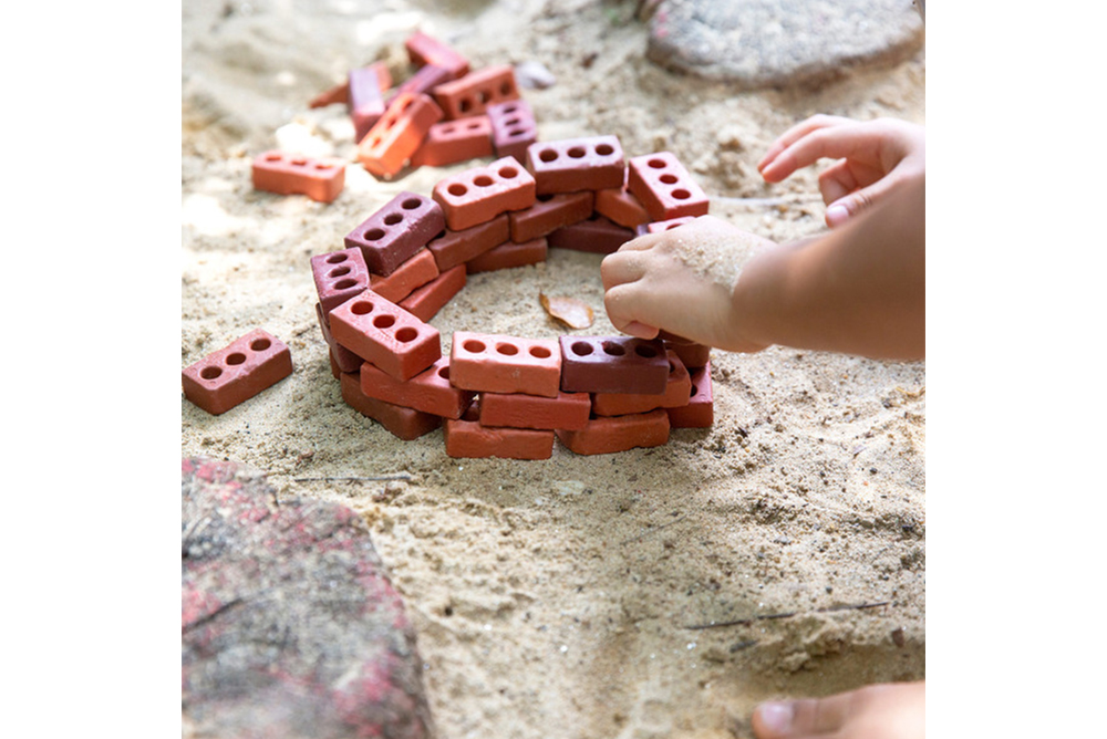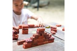 縮小的迷你磚塊,每塊磚都有重量,體驗建立模型、比例尺與建築工程設計的概念。