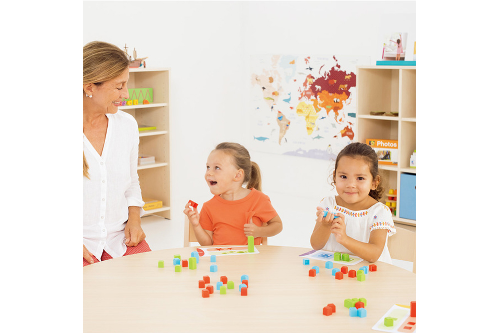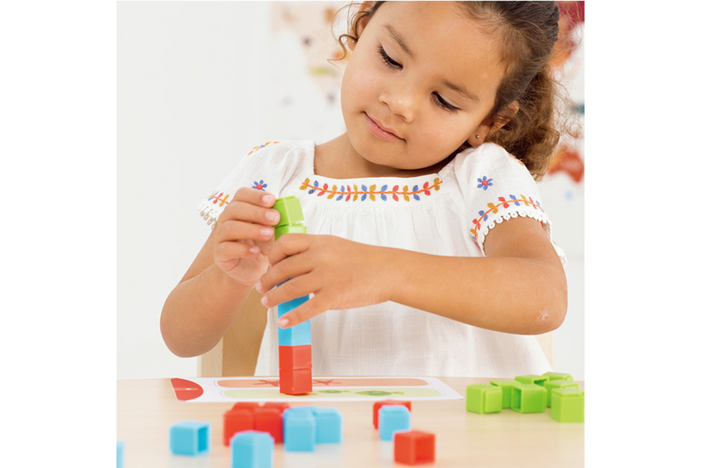 1.三種顏色的立體方塊,可互相嵌合。堆疊積木同時學習數字概念,並提升手指精細動作技能。