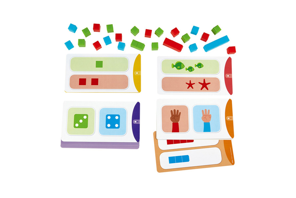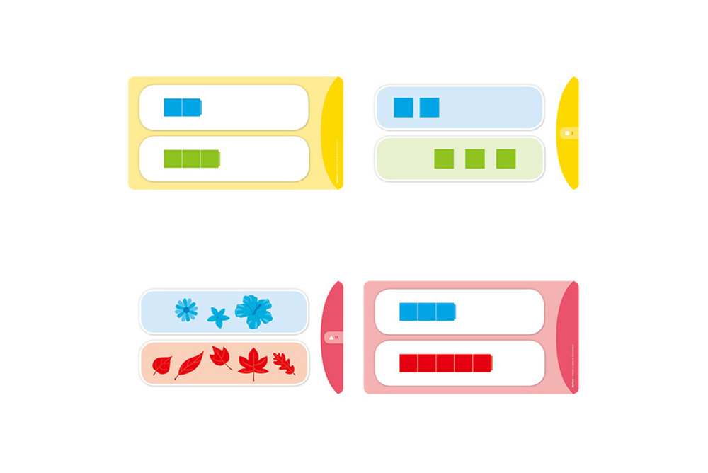 2.圖卡以四種方式呈現數字概念,包含方塊、可愛插圖、骰子及手指,提供多種數量對應及計數的學習。
