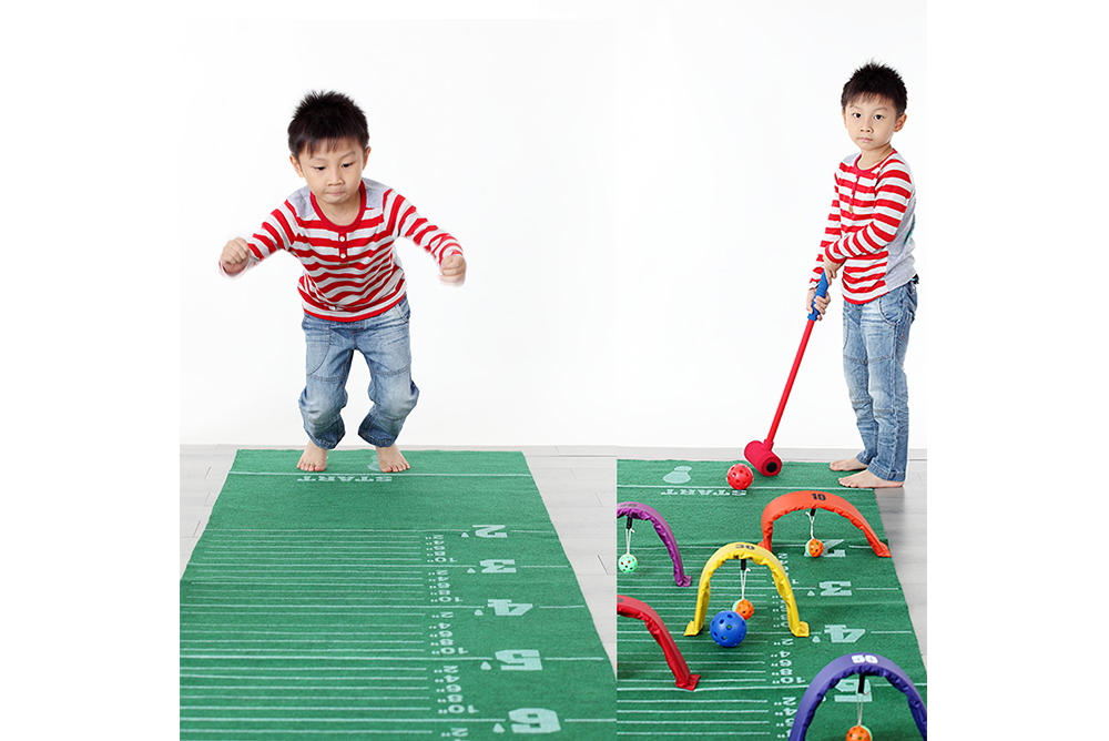 本器材由(球桿、U形山洞、地墊) 組成,
