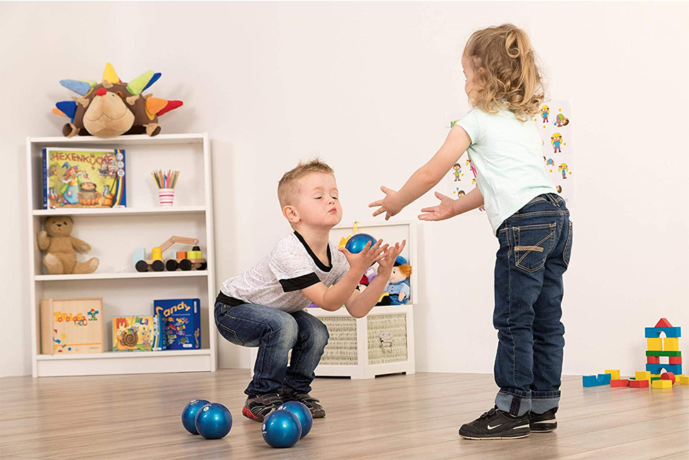 這套動感沙球能夠促進幼兒區分不同的重量和作用影響下身體的靈敏度。