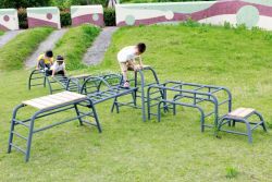 鋁管表面噴灰色耐磨戶外塑粉,形成獨特的抗滑表面,確保孩子們運動時更加安全。
