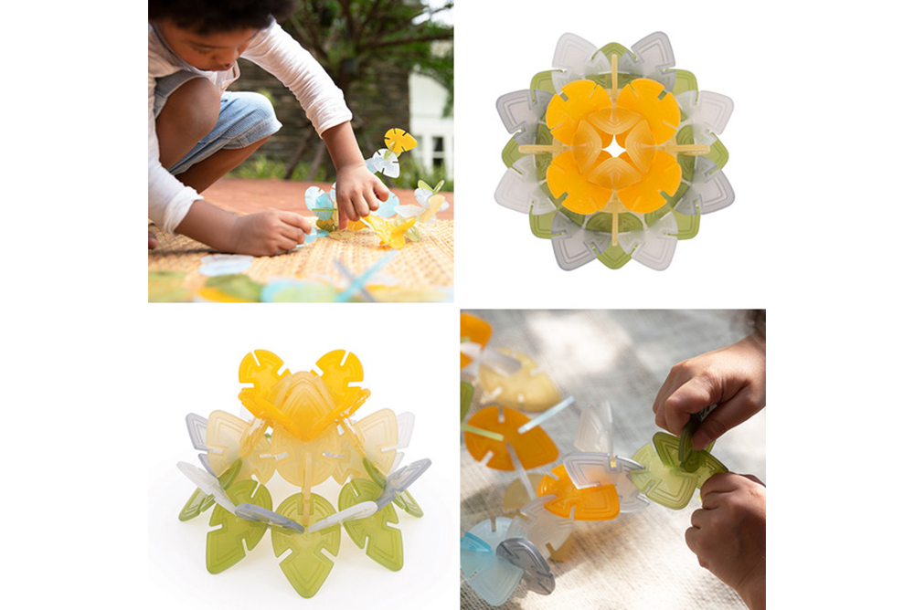 1.設計源自樹葉、水、泥土、種子等自然意象,重視環境永續,採用回收再生材料製成。