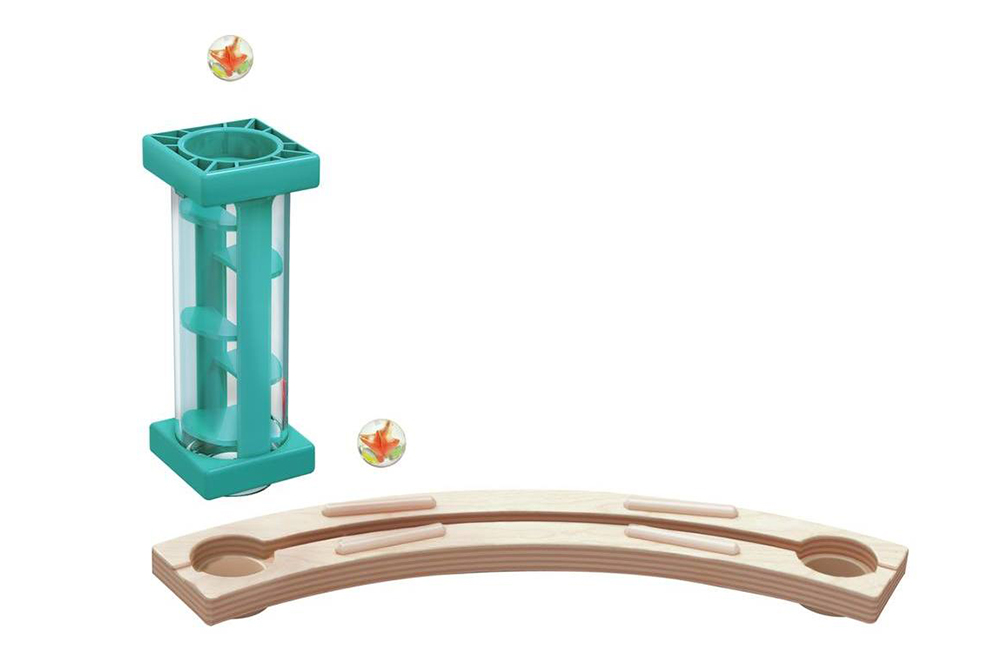 以及四塊可隨機分配彈珠軌道的積木塊。