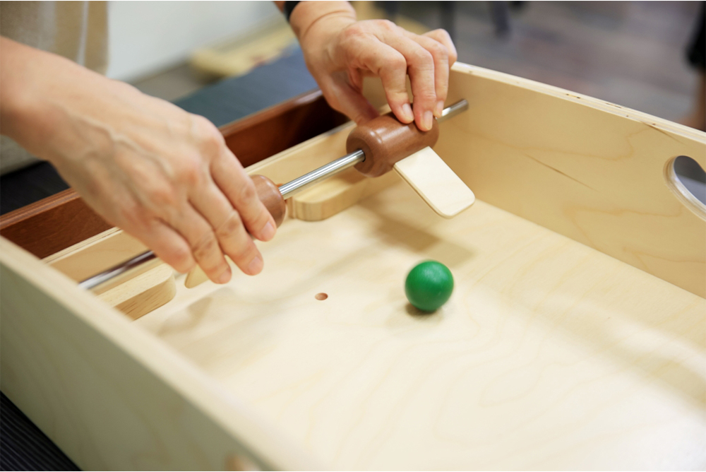 2. 兩端各有發球凹點,手持木球放在發球位置,訓練手部穩定性