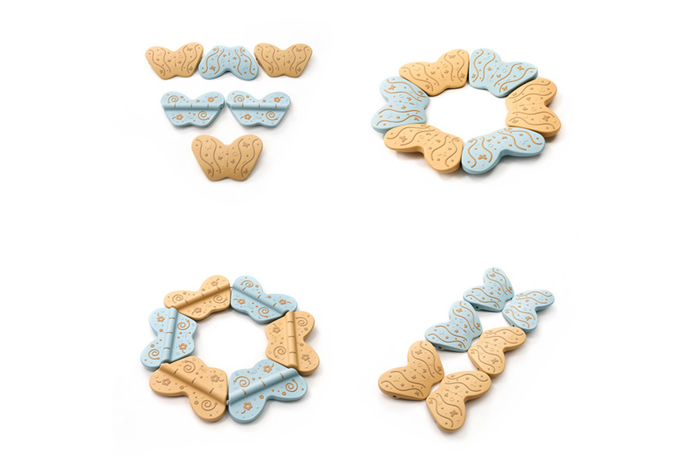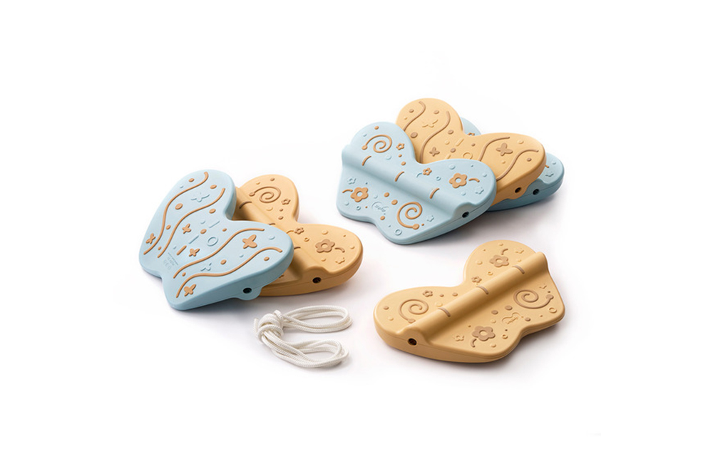1.翩翩起舞的蝴蝶,一面是快速的蹺蹺板,另一面是和緩的弧形搖擺,翻面就能體驗不同的晃動感。