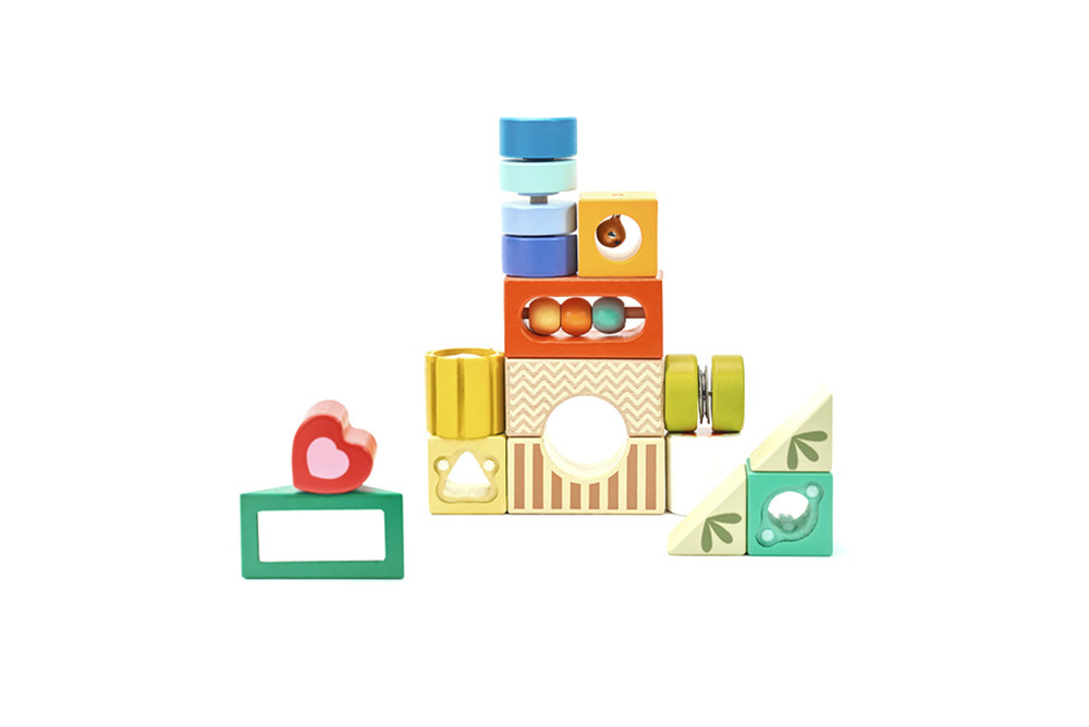 堆疊積木時引發幼兒探索好奇心,提升手部穩定度與空間感。