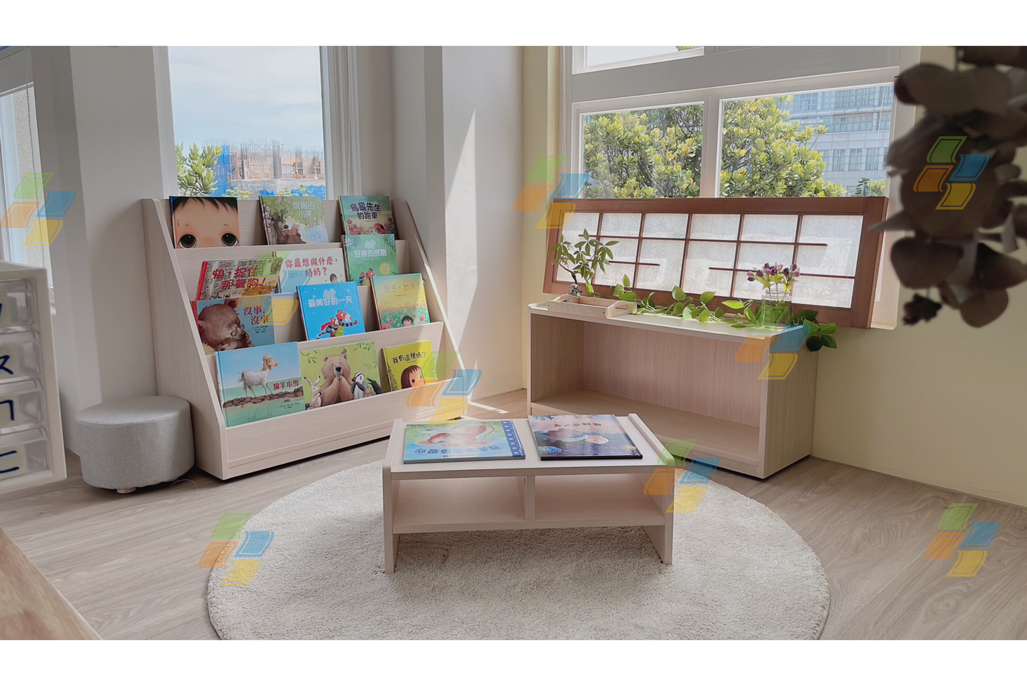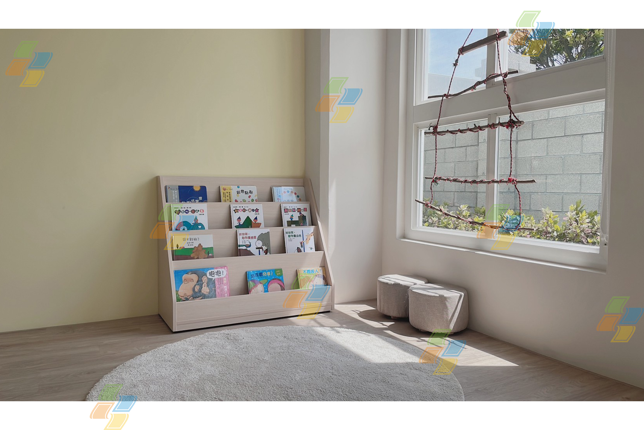 桌椅、圖書櫃、系統櫃、床、遊具、畫架…等等