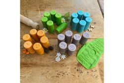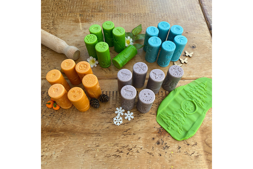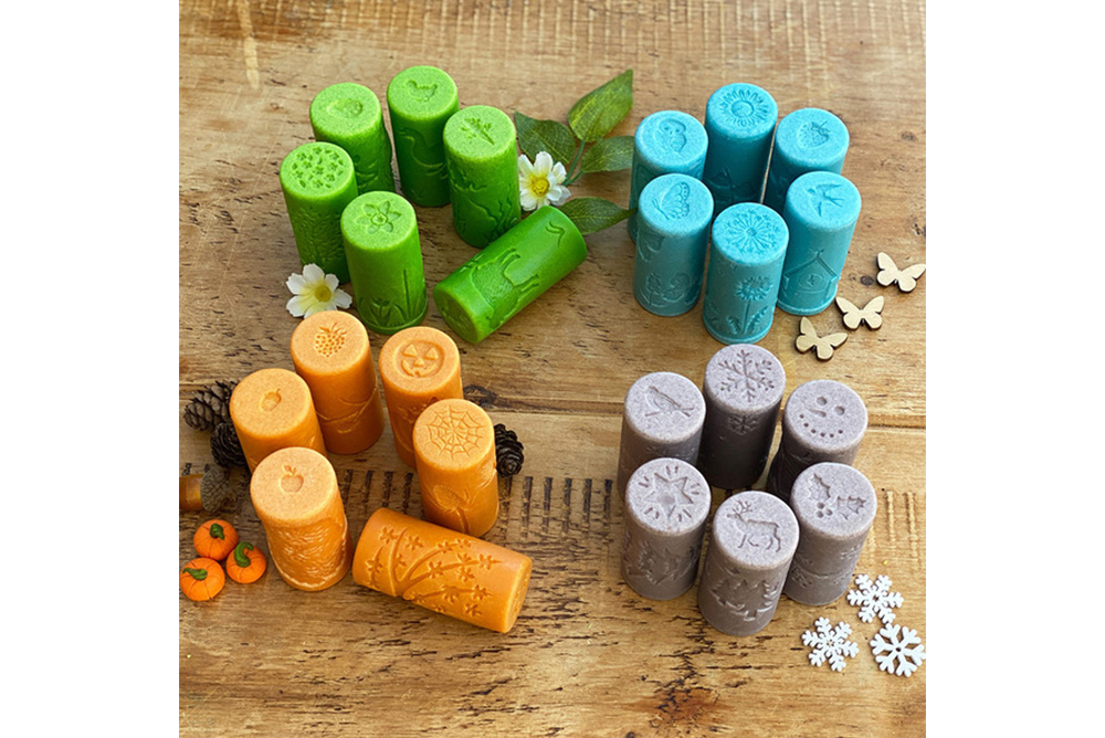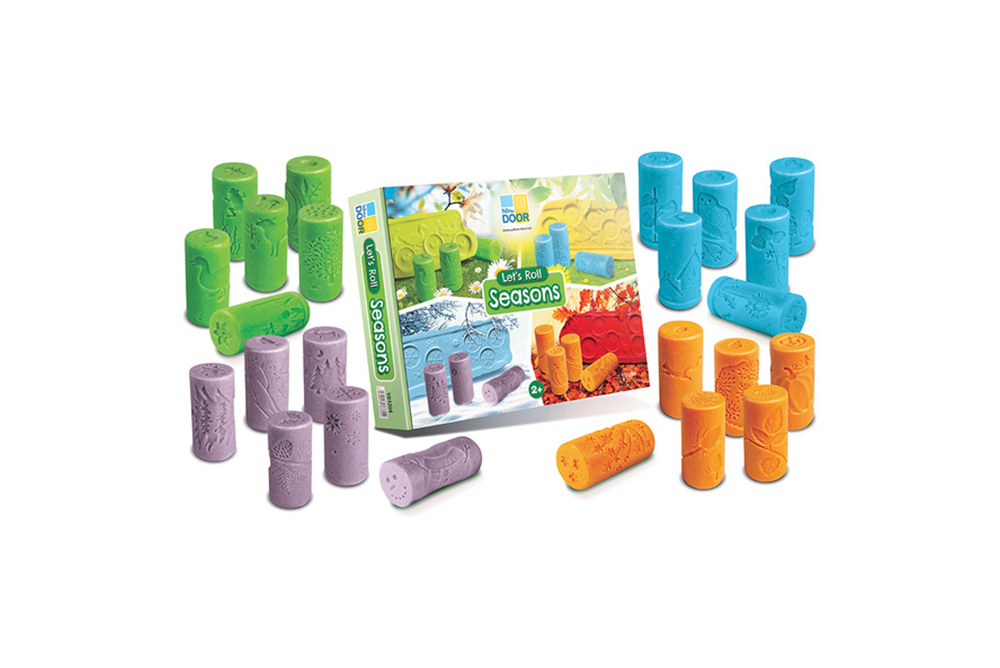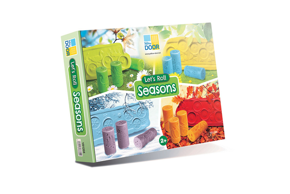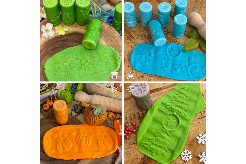 1.24個四季主題的滾筒印章,滾筒側邊是連續圖案,頂端則用來點綴更多故事細節
