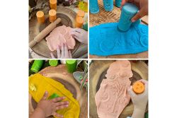 3.可自由搭配多種創作媒介,如麵團、黏土、沙水、顏料拓印等,