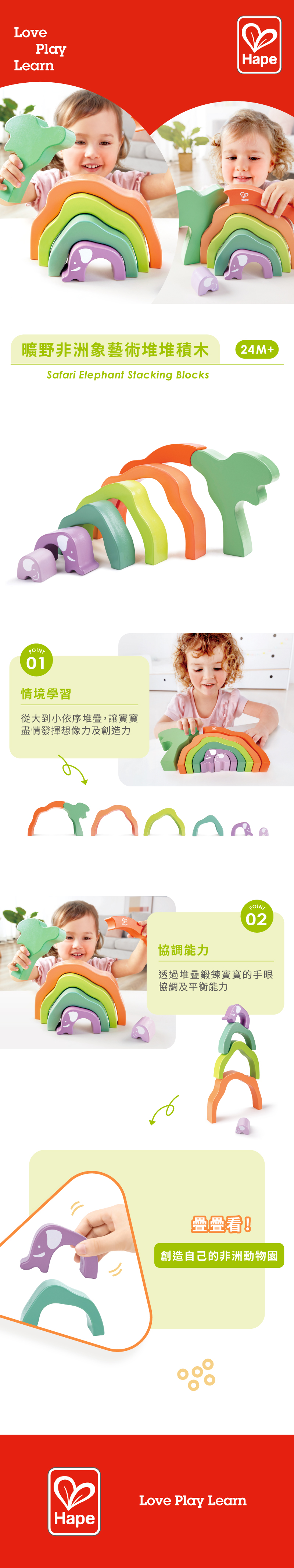 包括兩隻大象和五個拱形形狀。非洲象主題是提高兒童對生物多樣性和生態意識的絕妙方式。