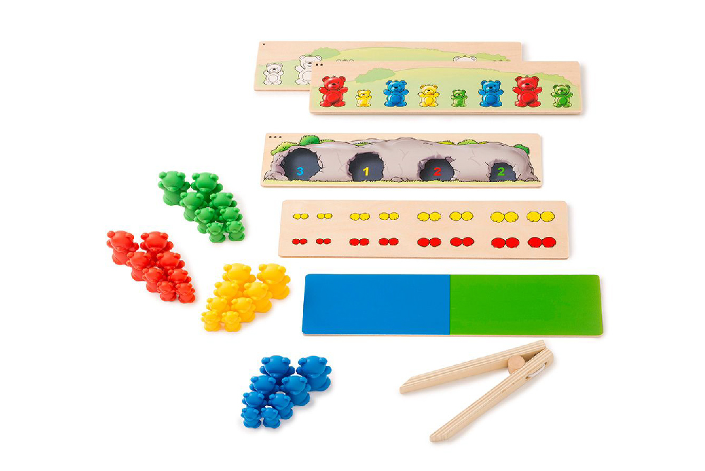 ★4種不同尺寸的熊熊,增加夾子夾取的挑戰,強化幼兒手部力氣及工具操作的靈活度。
