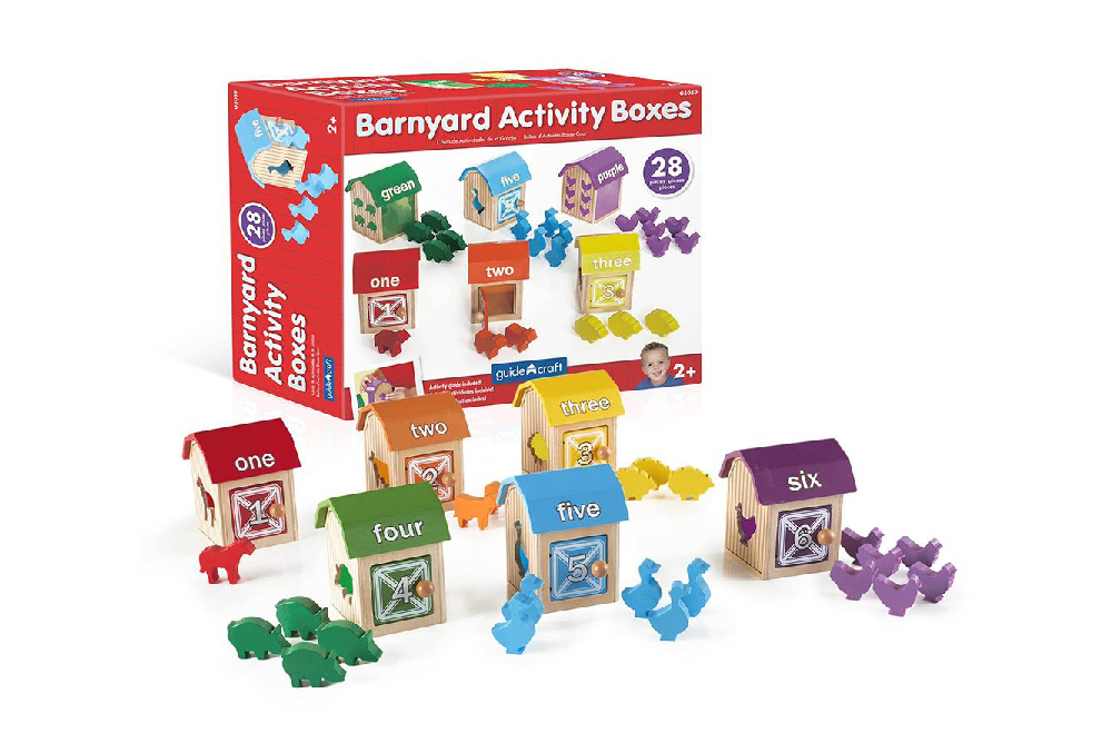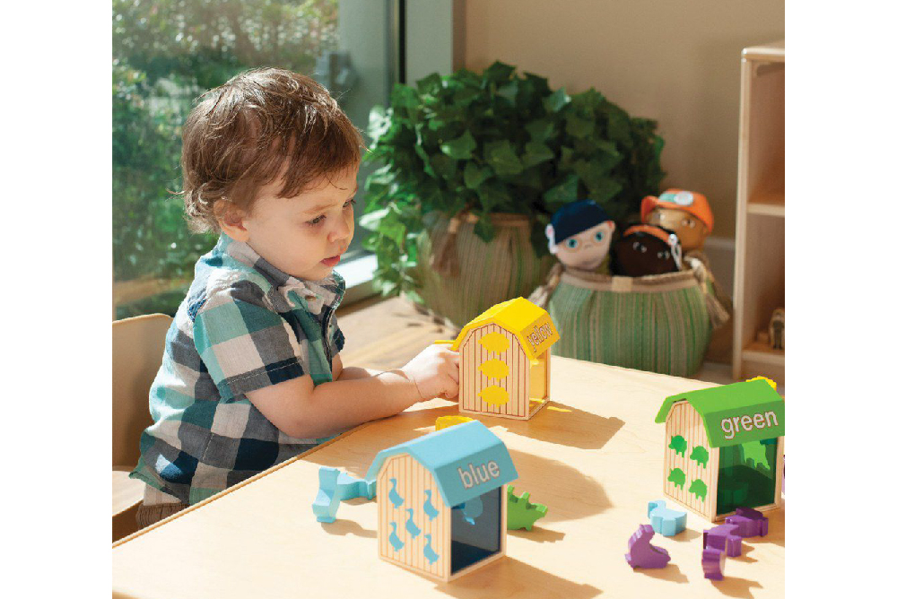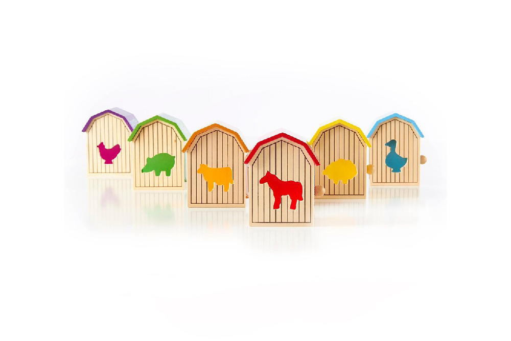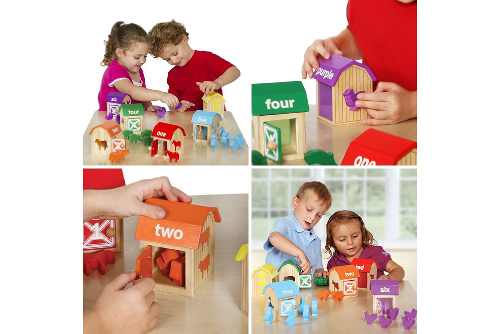 ★農場小屋的每一面牆壁都設計了不同主題,包括數字門、動物數數塗鴉、彩色透視窗和動物配對孔。