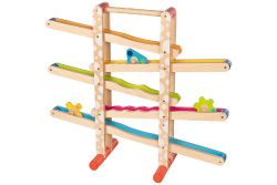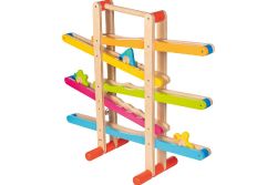 ★波浪滑軌高度適合幼齡孩子站著或坐著操作,大尺寸的滾輪更方便孩子抓握及對準放入軌道中。