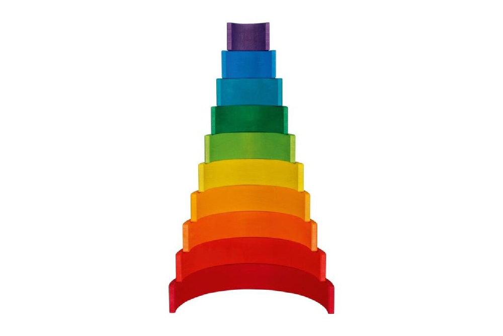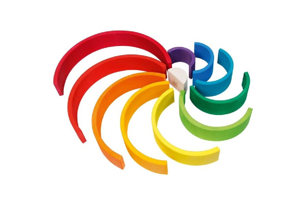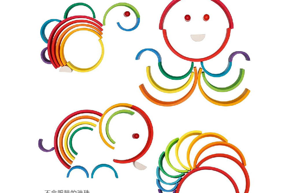 ★開放式積木鼓勵孩子嘗試各種可能性,無論是彎彎彩虹橋、倒過來的微笑搖搖船、或是尖尖的彩虹塔,