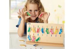 ★底板可架在立座上,並能磁吸襪子不掉落。透過晾曬襪子的情境,認識磁力原理,並提高學習動機。