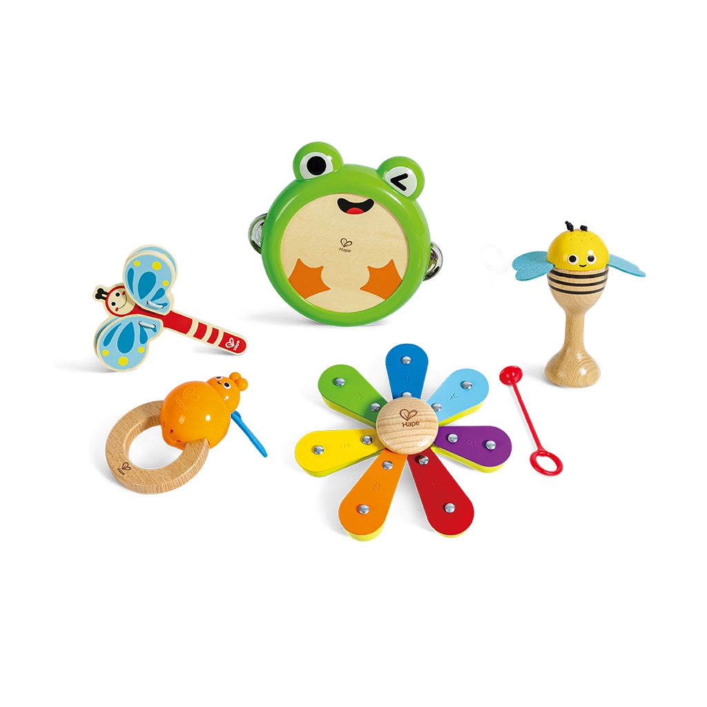 包含五種不同的小樂器,可合奏,也可獨奏,是很好的兒童音樂啟蒙樂器。
