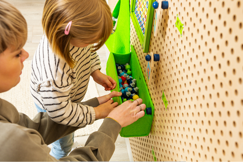 毛氈袋非常適合存放遊戲插頭和配件,使用固定塞可以輕鬆地將袋子固定到板上。