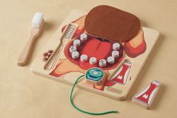 套件中還包括一管玩具牙膏、一把牙刷和一些牙線。