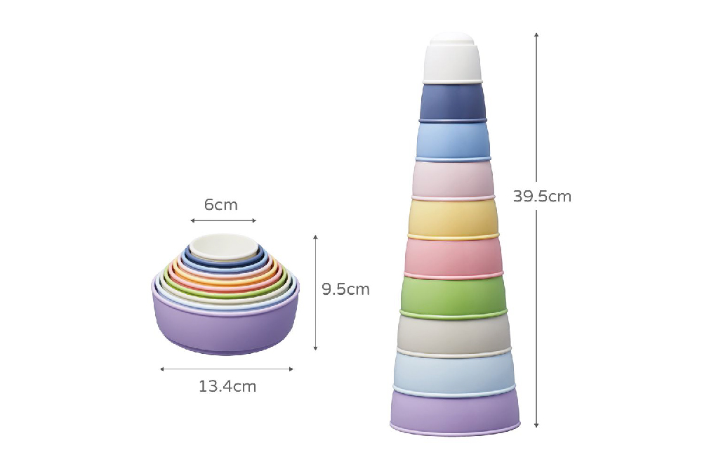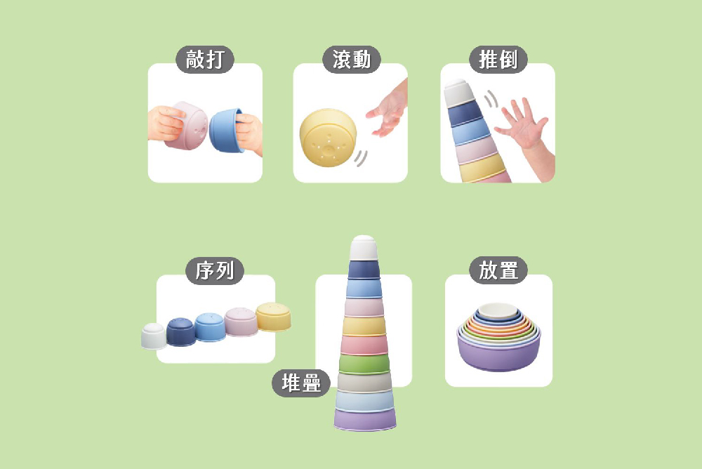 圓潤的觸感,圓底的套杯很容易疊放,適合孩子小手,輕鬆堆疊、鍛鍊手指穩定度。
