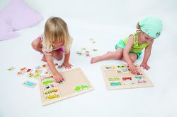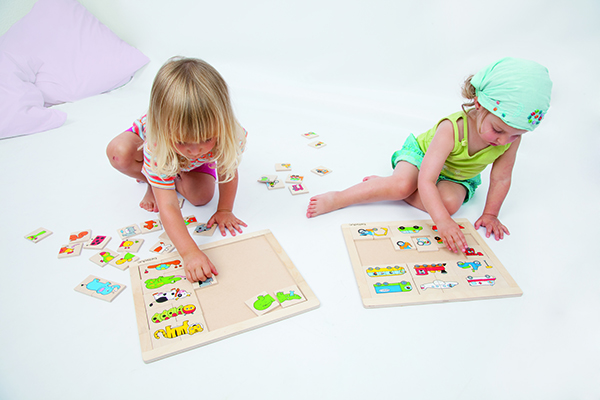 兩兩對應圖案的拼圖板,共有15組動物圖案,讓幼兒練習觀察圖案,找出線索,並認識圖案名稱。